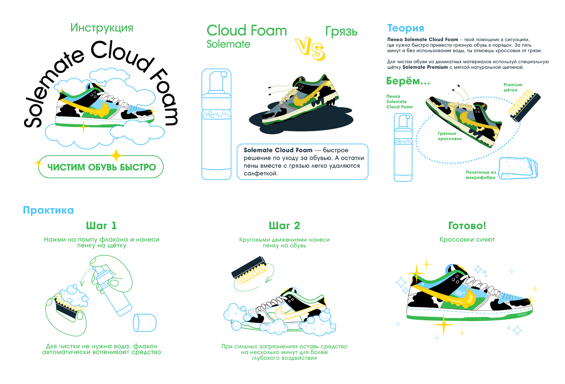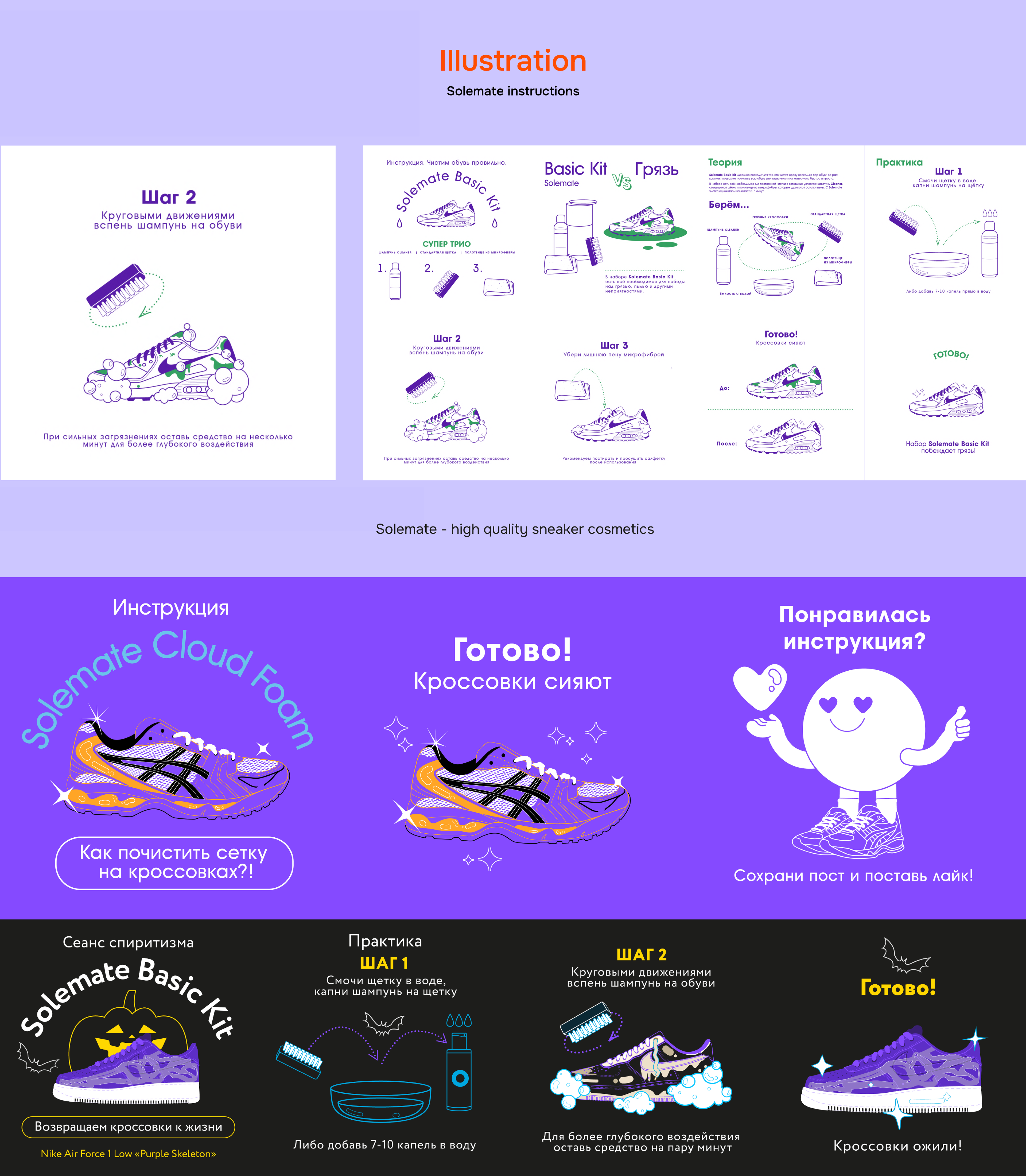 As the creative illustrator for Solemate, I had the opportunity to draw illustrative special instructions for each of their high-quality sneaker and shoe cosmetics. With a keen eye for detail, I visualized step-by-step guides that added a touch of fun and creativity, making shoe care routines an enjoyable and delightful experience for Solemate's valued customers.