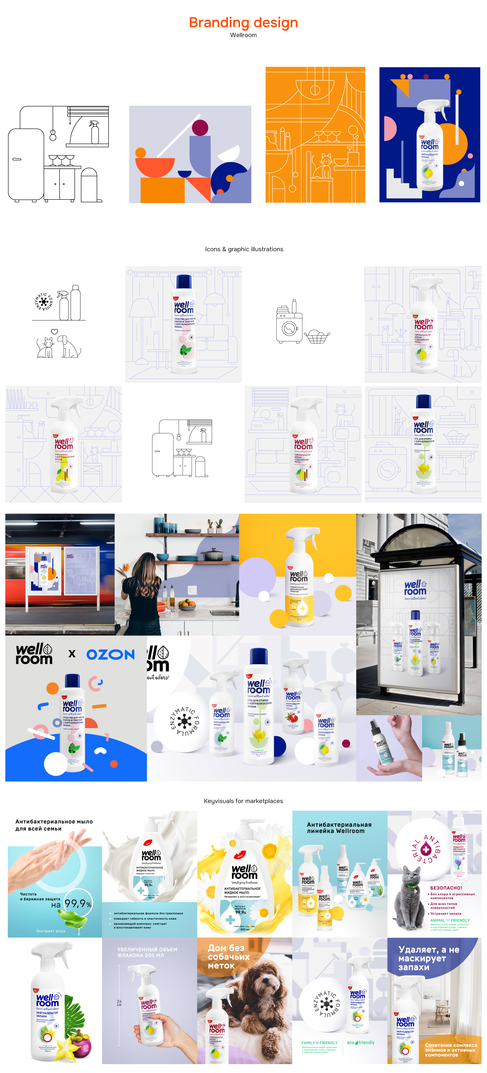 Wellroom is an innovative line of household and antibacterial cleaning products. For this project, I took charge of the entire art direction and designs, infusing each step with care and creativity to bring this concept to life